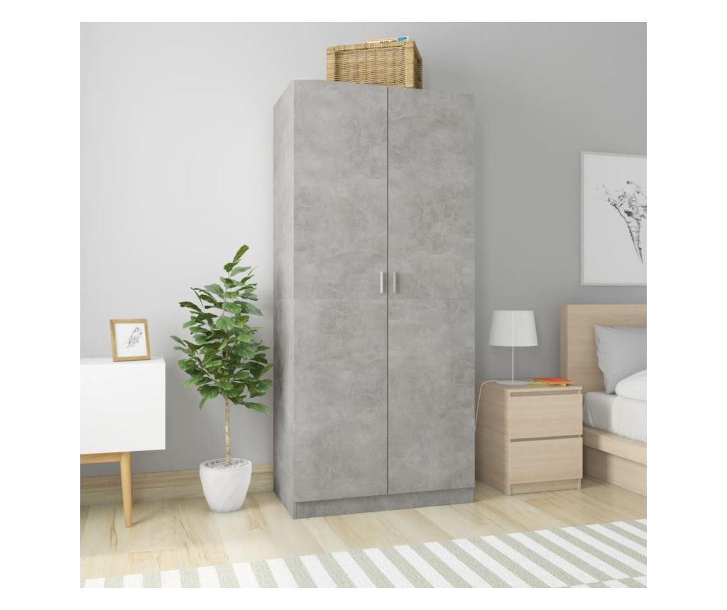 The wardrobe is made of premium chipboard, ensuring its sturdiness, durability, and long service life. It has a large compartment with a hanging rail, offering ample space for both longer garments and other folded clothes or accessories like sweaters, jeans, hats, handbags, etc.