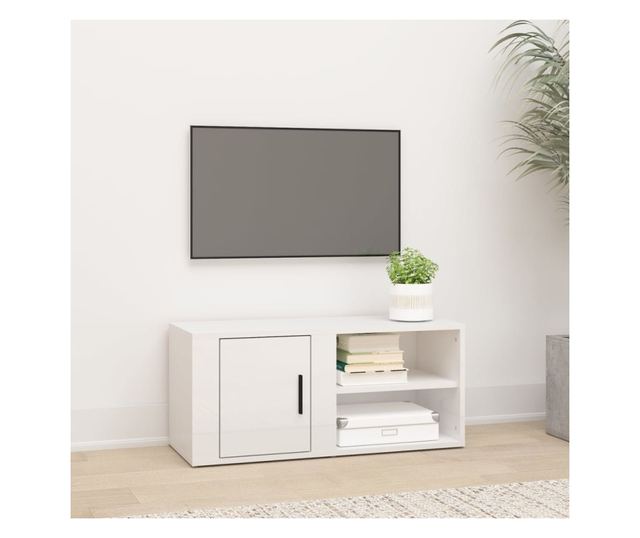 TV Stand, High Gloss White, 80x31.5x36 cm, Processed Wood