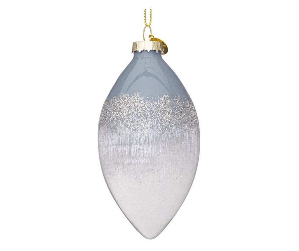 Set of 12 Christmas tree ornaments in white and grey glass with glitter. Includes hanging strings.