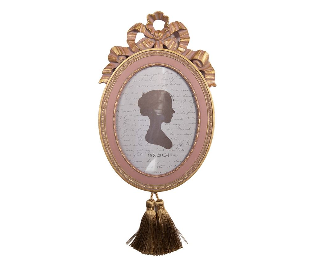 This romantic-style wall photo frame is made of polyresin and glass. It can be hung vertically and includes a pendant. Frame dimensions: Length 21 cm x Width 2 cm x Height 43 cm (with pendant). Photo dimensions: Length 15 cm x Height 20 cm.