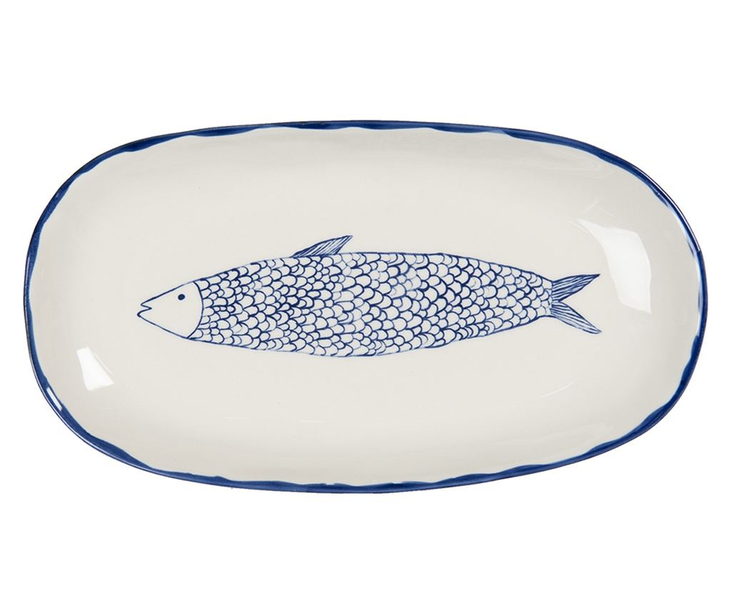 Beige and Blue Ceramic Fish Plate 30x16x3 cm - Vivre