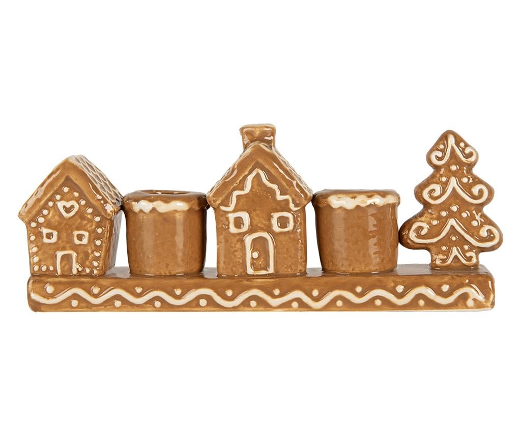 Christmas Houses Candle Holder, White and Brown Ceramic, 21x4x8 cm - Vivre