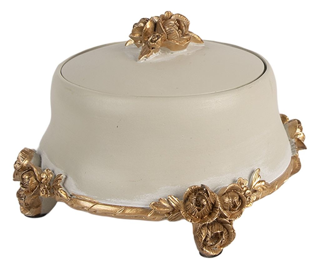 Beige and Gold Polyresin Jewelry Box Ø 14x9 cm