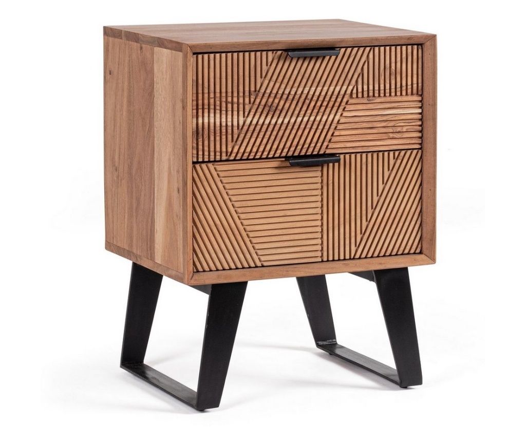 Isar Acacia Wood and Black Steel Nightstand 44x35x58h